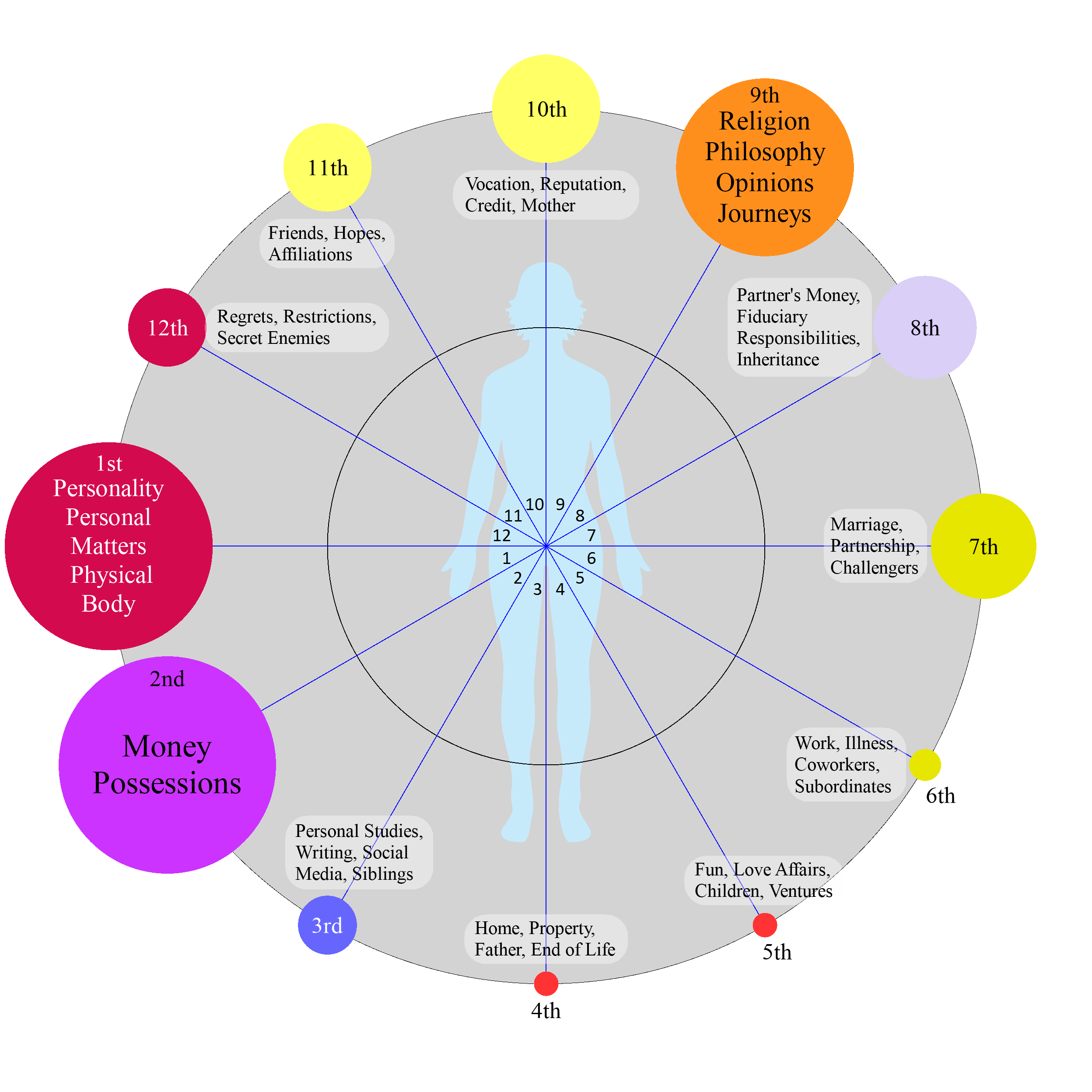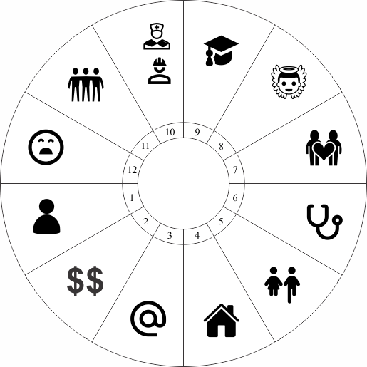 The twelve "Houses" in the chart (the pie sections) correspond to one of the key Departments of Life.